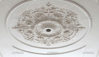 - Потолочные розетки. Они выполняются, как правило, под люстру и бывают разнообразных форм, видов и стилей. Мы изготавливаем такие розетки как: лепные с орнаментальным узором; гладкие профилированные без орнамента; врезные на плинте, которые утапливаются в плоскость потолка при монтаже; наборные, состоящие из ряда отдельных элементов и собираемые в композицию на месте установки.